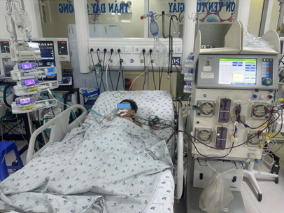 Trẻ B. N. M. K. 4 tuổi, nam, chẩn đoán sốc sốt xuất huyết dengue nặng suy đa cơ quan được điều trị tích cực thở máy, lọc máu liên tục, hỗ trợ gan, điều chỉnh rối loạn đông máu