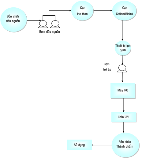 Nước từ hệ thống xử lý sơ bộ được cấp vào bồn chứa đầu nguồn nhằm mục đích cung cấp nước ổn định cho hệ thống.