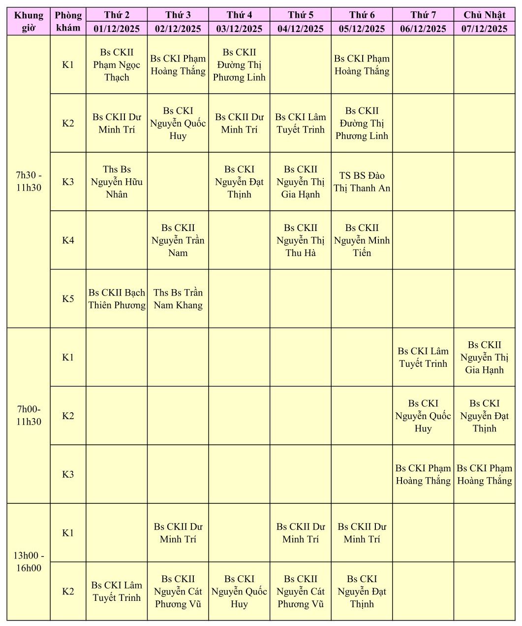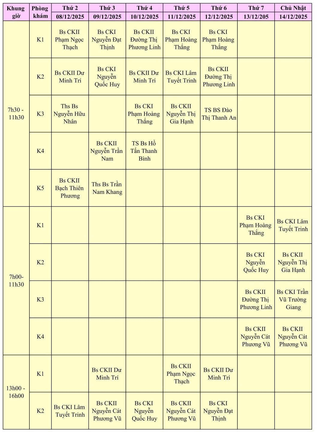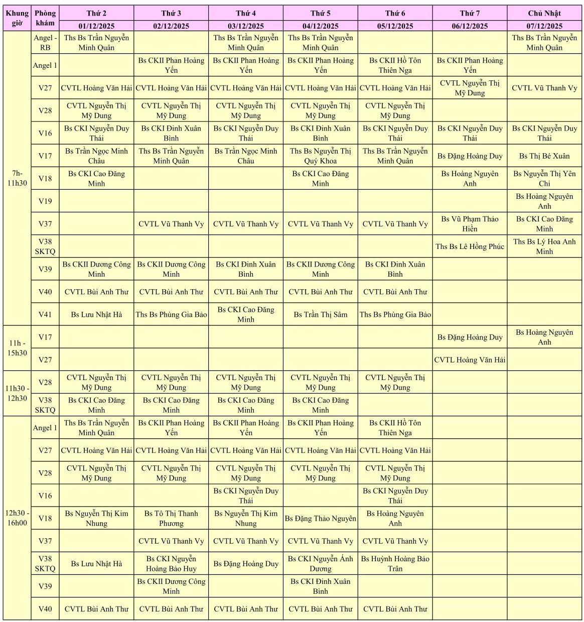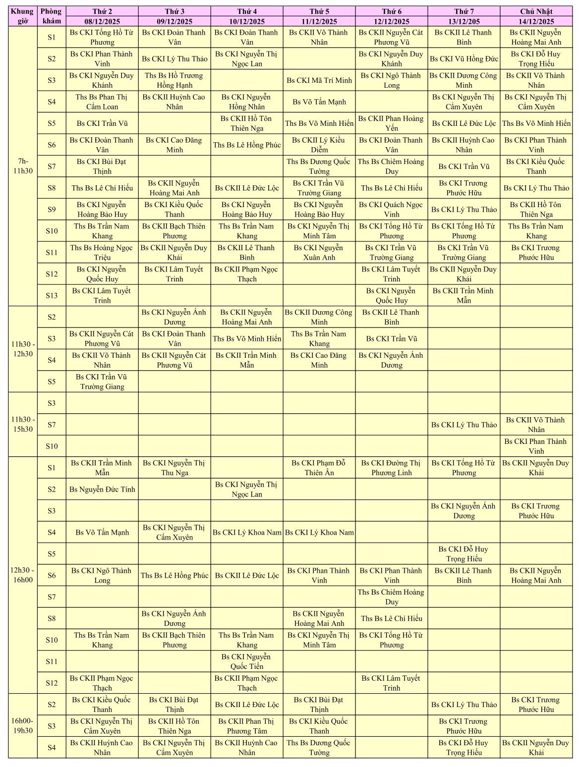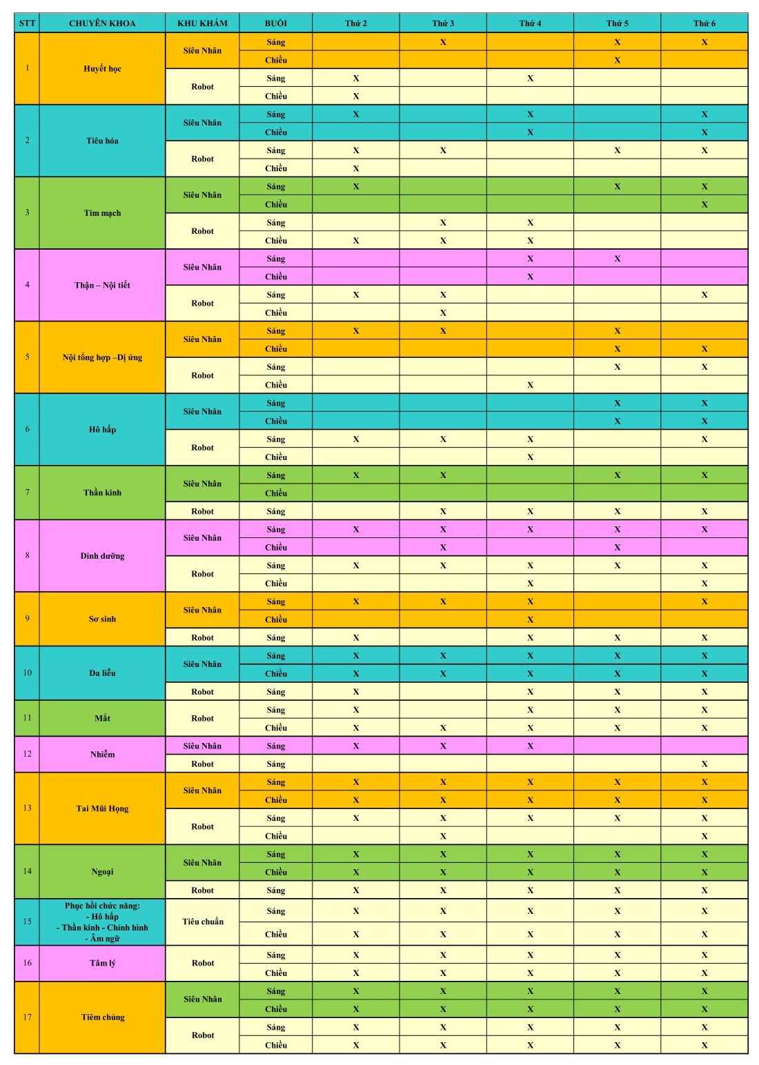 LỊCH PHÒNG KHÁM CHẤT LƯỢNG CAO – SIÊU NHÂN