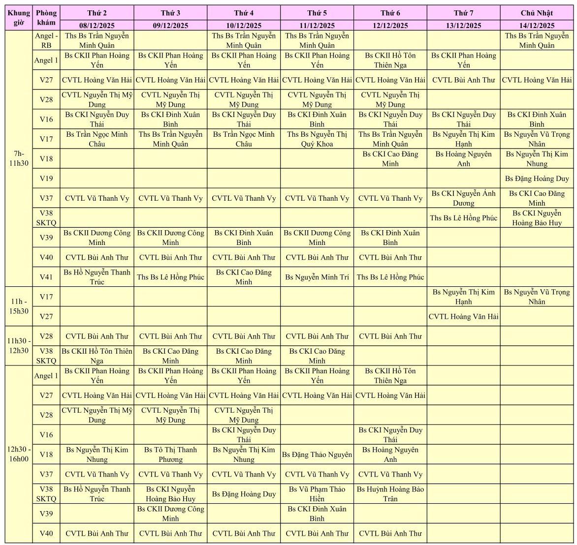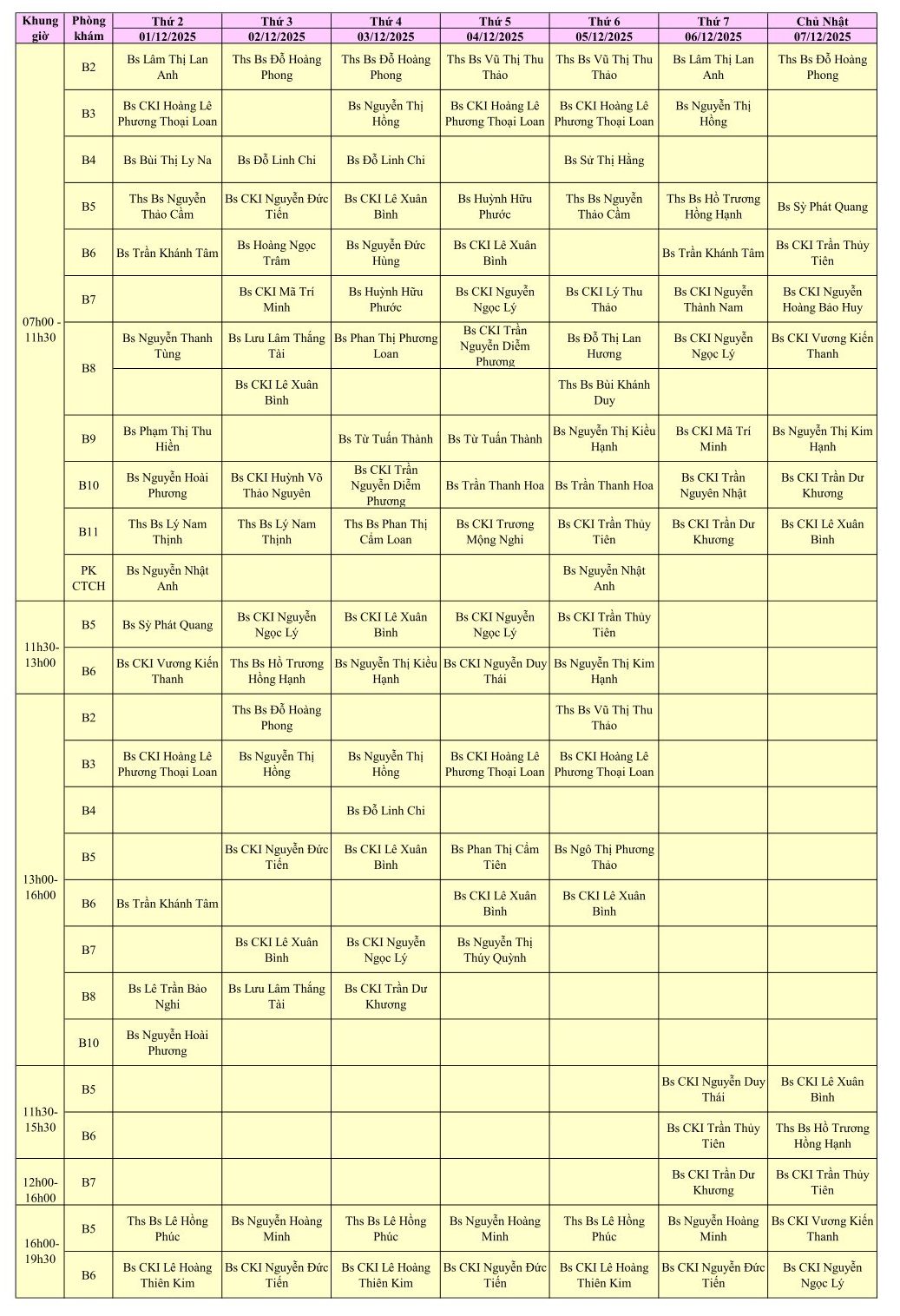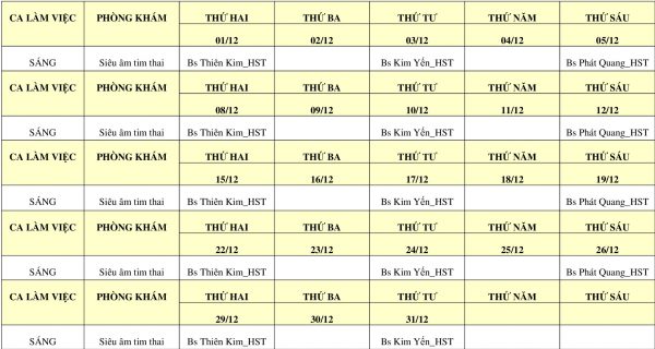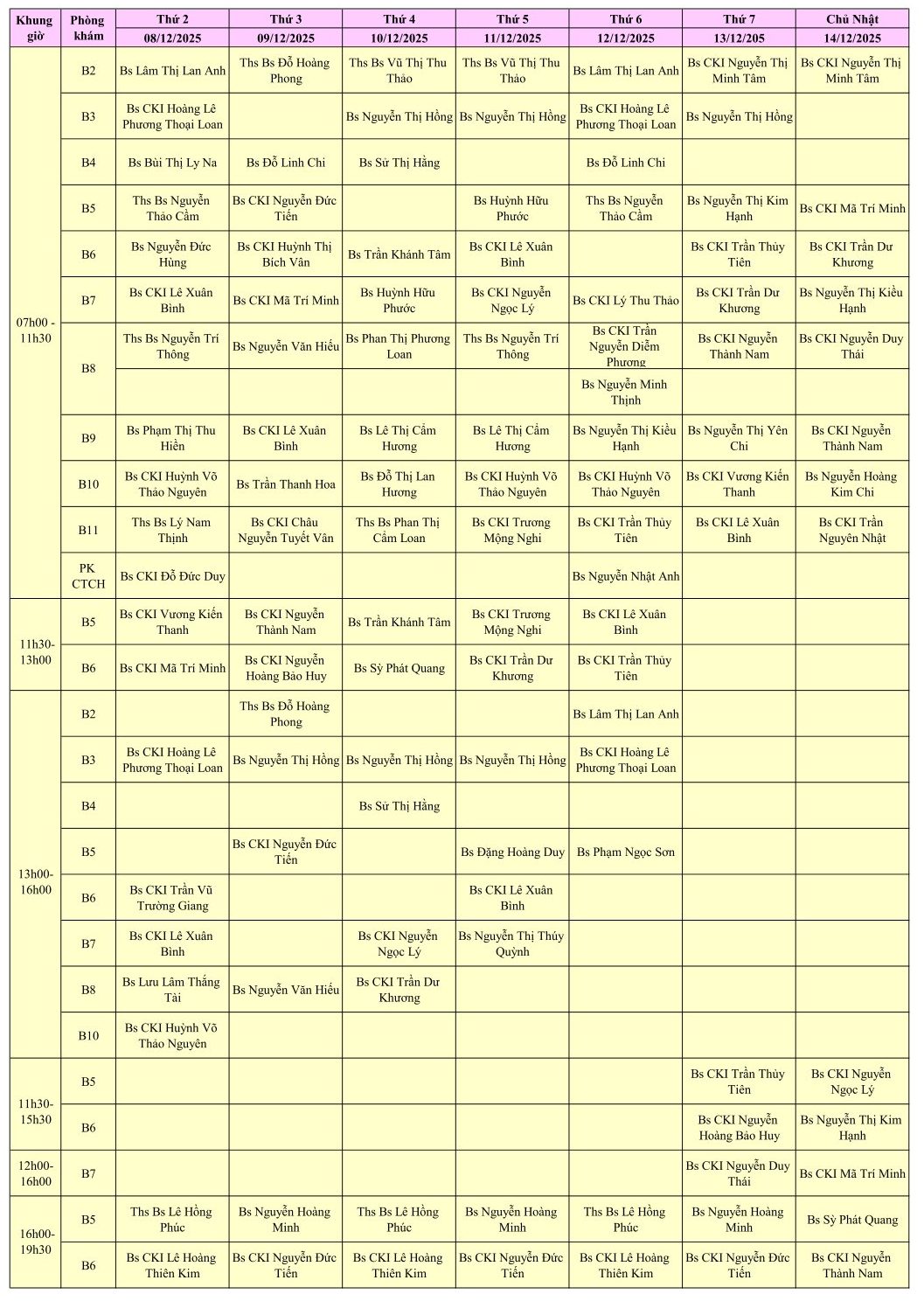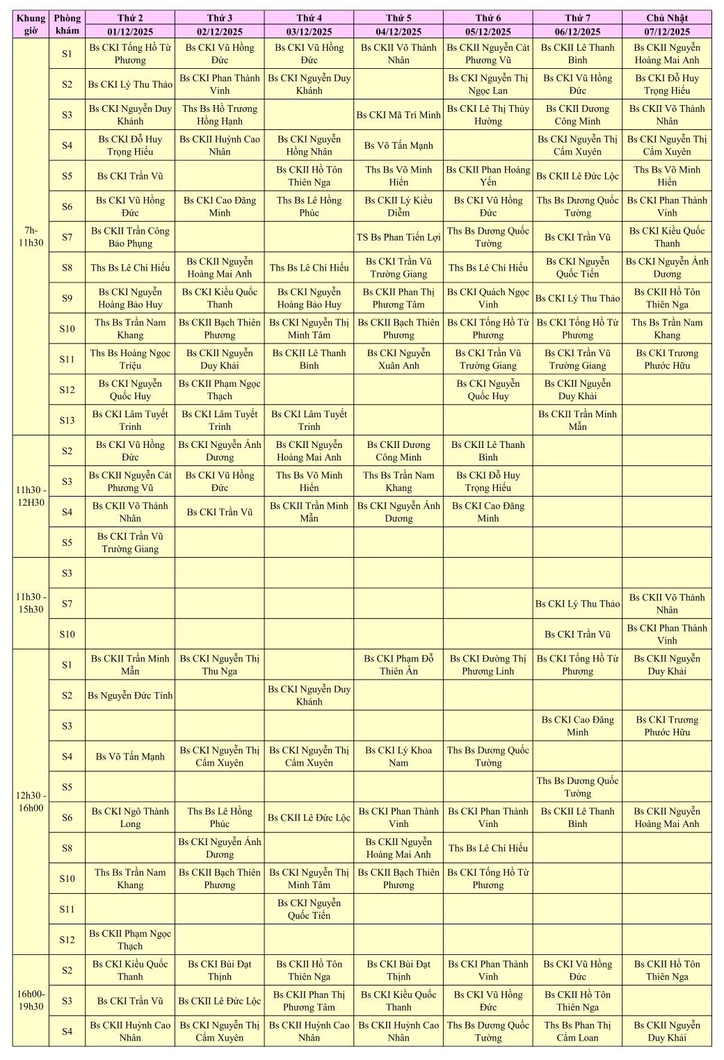 LỊCH PHÒNG KHÁM CHẤT LƯỢNG CAO – SIÊU NHÂN