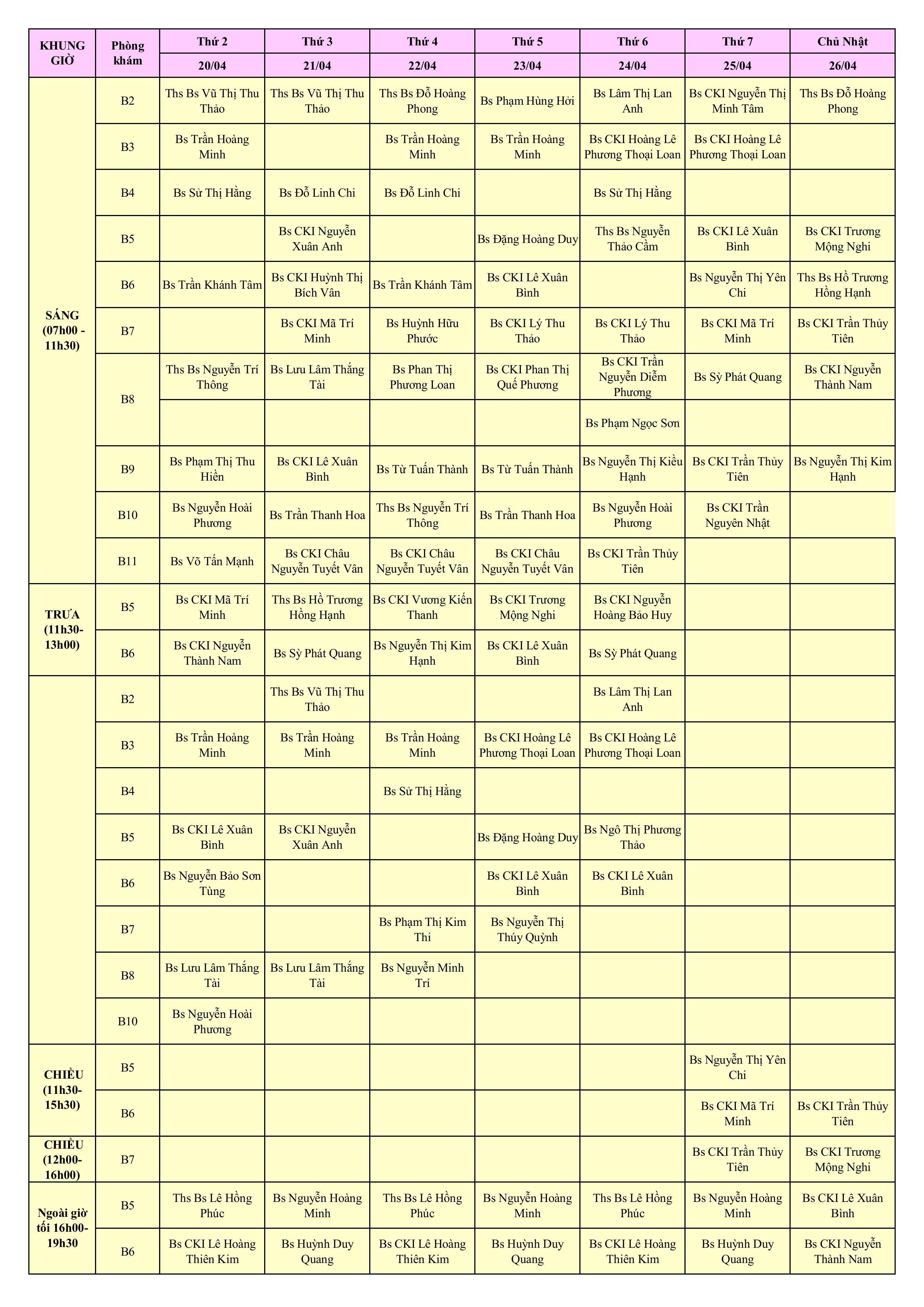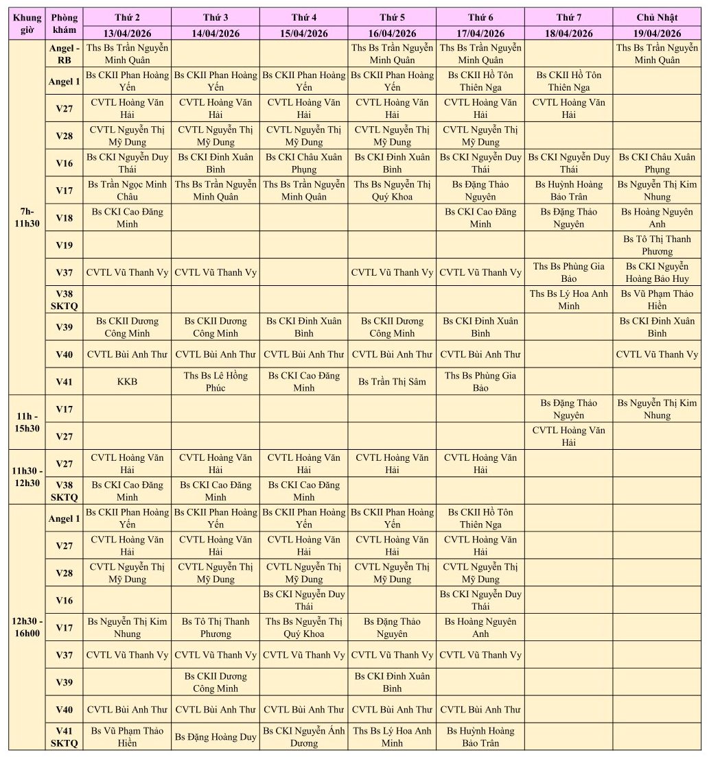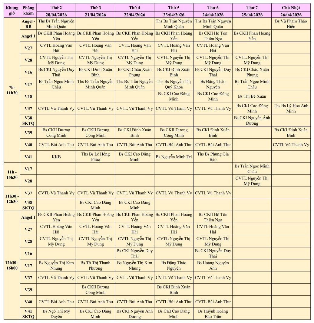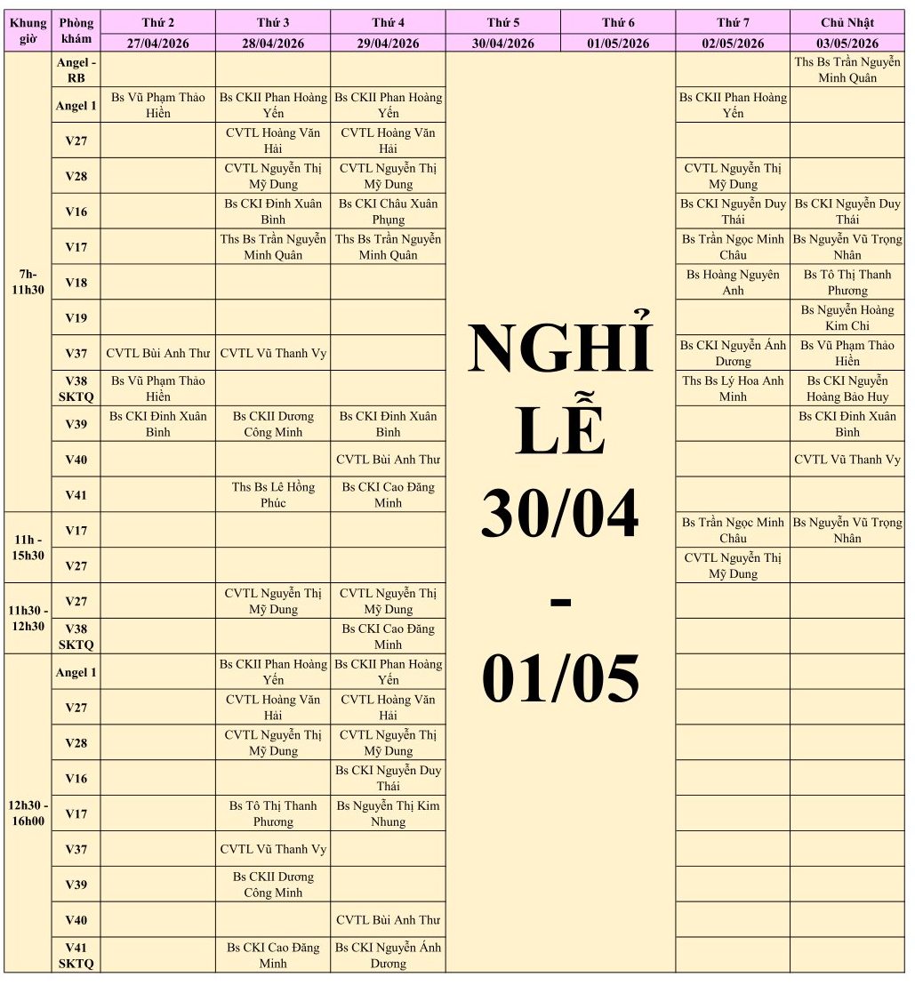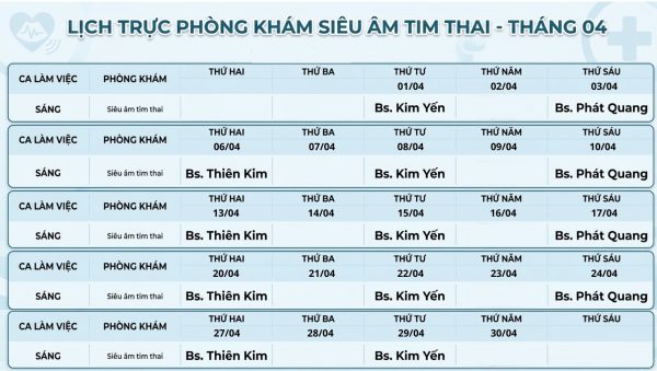 LỊCH PHÒNG KHÁM THÁNG 4/2026