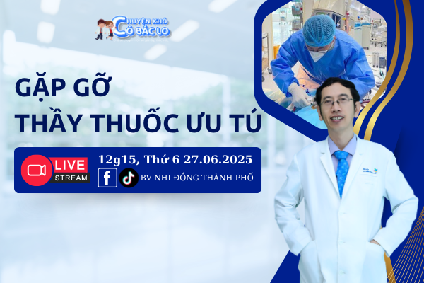 Vào lúc 12 giờ 15 phút trưa thứ Sáu, ngày 27 tháng 06 năm 2025, Bệnh viện Nhi Đồng Thành Phố sẽ tổ chức buổi livestream tư vấn sức khỏe với sự tham gia của BS.CK2 Nguyễn Minh Tiến – Phó Giám đốc Bệnh viện, chuyên gia hồi sức nhi khoa – với chủ đề: