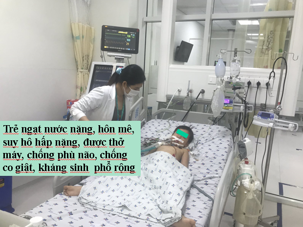 Ngày 20/5/2021 Khoa Cấp cứu Bệnh viện Nhi Đồng Thành Phố tiếp nhận một trường hợp trẻ Ng. D. Th. Q. 4 tuổi, nam, ngụ ở Trà Ôn, Vĩnh Long, được chuyển từ bệnh viện địa phương với chẩn đoán ngạt nước do té ao. Khai thác bệnh sử ghi nhận sáng cùng ngày nhập viện, Q. đang ở chơi trong nhà với mẹ, nhân lúc mẹ bé dọn dẹp nhà cửa không để ý đến, trẻ đi ra trước nhà chơi, không may té xuống ao nước phía trước nhà. Người nhà phát hiện, vớt trẻ lên, xốc nước và đưa trẻ đến bệnh viện địa phương trong tình trạng hôn mê, tím tái thở yếu, co gồng, được các bác sĩ cấp cứu đặt nội khí quản giúp thở, chống co giật, sau đó chuyển đến Bệnh viện Nhi Đồng Thành Phố. Tại đây, ghi nhận trẻ hôn mê, tím tái, co gồng từng cơn, Xquang ngực cho thấy phổi trẻ tổn thương nặng lan tỏa 2 phế trường, nên được xử trí thở máy thông số thích hợp, chống co giật, chống phù não, điều chỉnh nước điện giải, kiềm toan và cho kháng sinh phổ rộng điều trị viêm phổi hít. Hiện tình trạng trẻ còn nặng, được chuyển khoa Hồi sức tích cực điều trị tiếp.