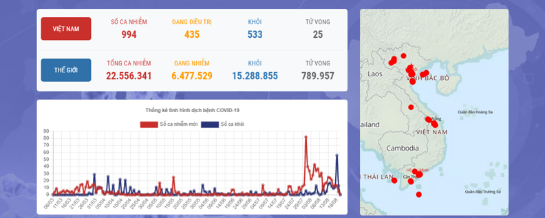 Tình hình điều trị: Theo báo cáo của Tiểu ban Điều trị – Ban chỉ đạo Quốc gia phòng, chống dịch COVID-19, đến thời điểm này có 533 bệnh nhân/994 bệnh nhân COVID-19 ở nước ta được công bố khỏi bệnh.