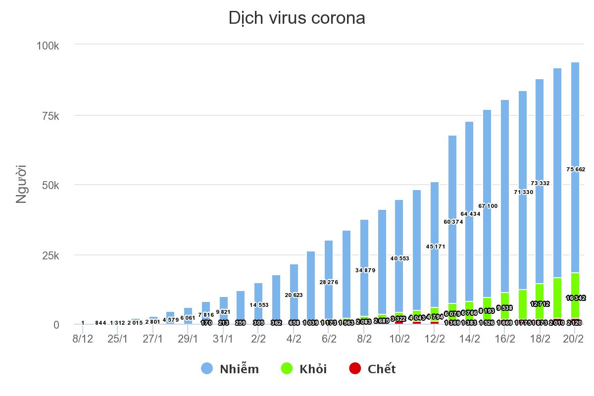 Dịch Covid-19 bùng phát ở Vũ Hán từ tháng 12/2019, xuất hiện tại 28 quốc gia, vùng lãnh thổ. Từ ngày 13/2, Hồ Bắc thay đổi phương pháp tính số ca nhiễm, các trường hợp có biểu hiện lâm sàng hoặc được chẩn đoán lâm sàng nhiễm virus được tính chung vào số liệu ca nhiễm mới.