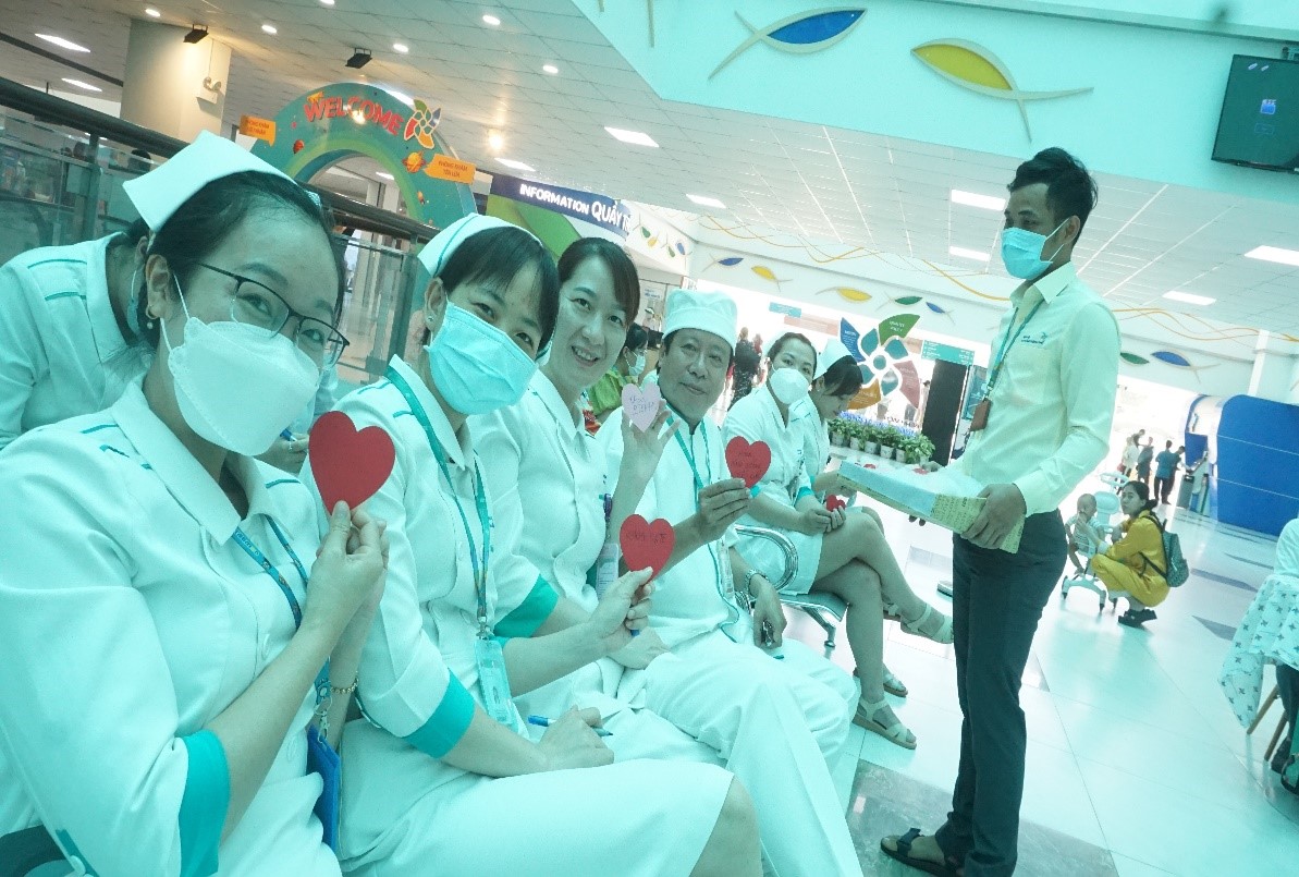 Nhân viên y tế, thân nhân/ người nhà bệnh nhân tham dự sân chơi “Cùng nhau tăng tốc-cùng vệ sinh tay”