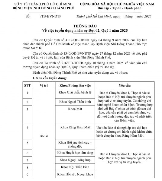 Thông báo Tuyển dụng nhân sự Đợt 01, Quý IV năm 2025