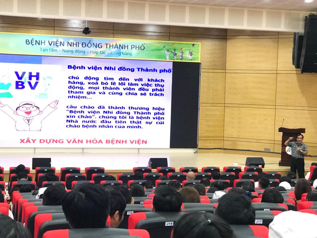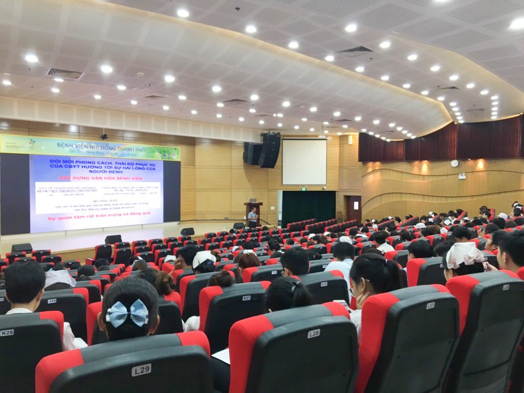 Vào các ngày 10, 11, 12, 13, 17/9/2019 Bệnh viện Nhi Đồng Thành Phố đã tổ chức 5 lớp tập huấn kỹ năng giao tiếp cho toàn thể nhân viên Bệnh viện năm 2019 nhằm thực hiện Quyết định số 67/2017/QĐ-UBND ngày 29/12/2017 của Ủy ban nhân dân Thành phố Hồ Chí Minh về Ban hành Quy định về Quy tắc ứng xử của cán bộ, công chức, viên chức và người lao động làm việc trong các cơ quan hành chính, đơn vị sự nghiệp công lập trên địa bàn Thành phố Hồ Chí Minh; Kế hoạch số 156/KH-BVNĐTP của Bệnh viện Nhi Đồng Thành Phố về việc học tập và làm theo tư tưởng, đạo đức, phong cách Hồ Chí Minh, thực hiện dân chủ cơ sở, quy tắc ứng xử, đổi mới phong cách, thái độ phục vụ của cán bộ y tế, xây dựng cơ sở y tế “Xanh – Sạch – Đẹp”, chất lượng bệnh viện hướng đến sự hài lòng của người bệnh, người dân năm 2019.