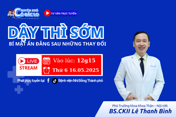 Hiểu được những lo lắng ấy, Bệnh viện Nhi Đồng Thành Phố tổ chức buổi livestream giao lưu cùng BS.CK2 Lê Thanh Bình – Phó Trưởng khoa Thận – Nội tiết, nhằm cung cấp cho quý phụ huynh những kiến thức hữu ích, cập nhật và khoa học. Buổi trò chuyện sẽ tập trung vào: